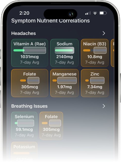 We cross reference your symptoms with NIH and USDA research to find which nutrient deficiencies or excesses are related to your symptoms.